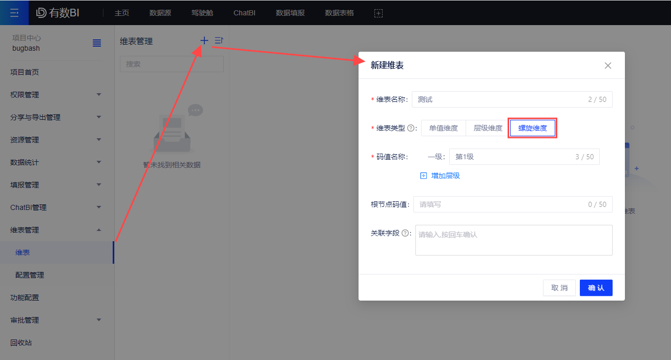 1、【新增】明细表,交叉表和统计表支持使用螺旋维度(下列展示中类别为螺旋维字段)
